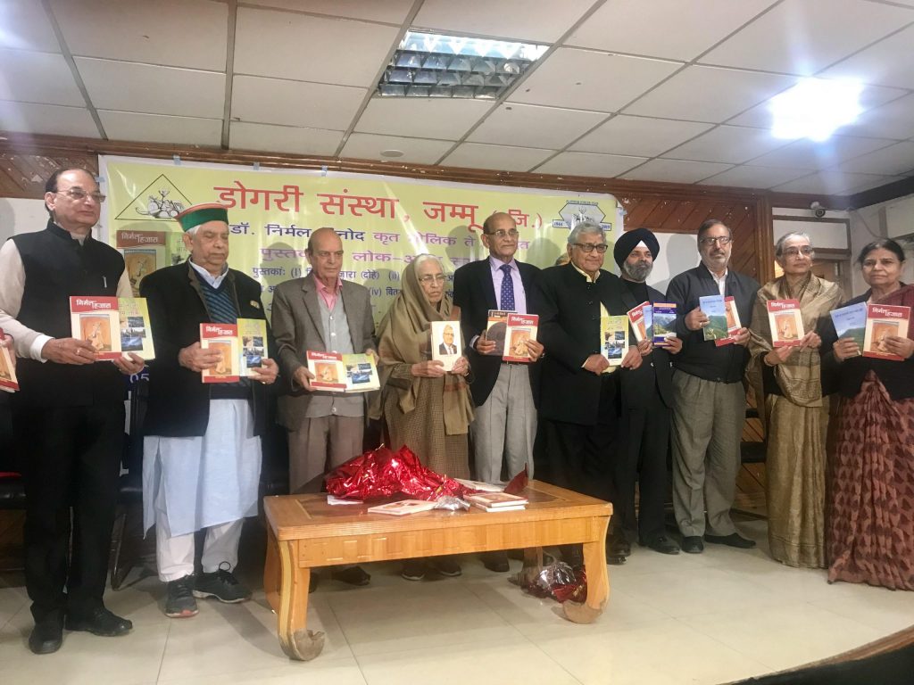 Dogri Sanstha Jammu organized a programme in which five books of veteran writer Dr. Nirmal Vinod were released. The books released include; Nirmal Hazara, As Te Aan Aam Lok; both original poetry works and Dehra Ch Ajj Bi Ugde N Sarhe Buhte, Vitasta Da Triya Kanda and Vah Bhi Din The; All three works of translation.