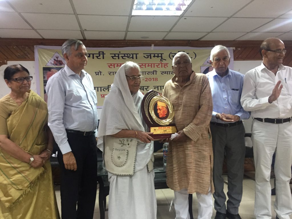 Prof. Ram Nath Shastri Memorial Award for the year 2018 has been conferred on Pitamber Nath Sharma for his Dogri novel “Bhagaali”. This prestigious annual award is given for the first book of a writer in Dogri in last five years. The award instituted by the family members of Late Shastri, the doyen of Dogri, is aimed at encouraging the new writers. The award carries a cheque for Rs.21000/-, a memento and a shawl.